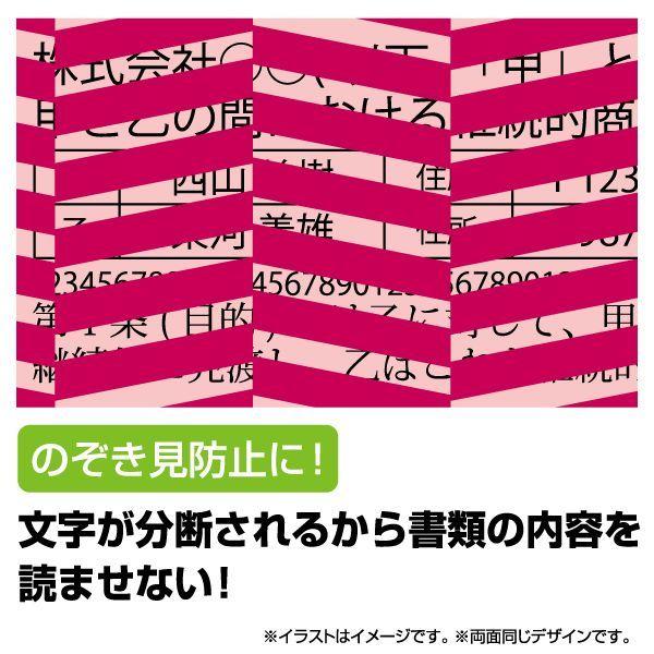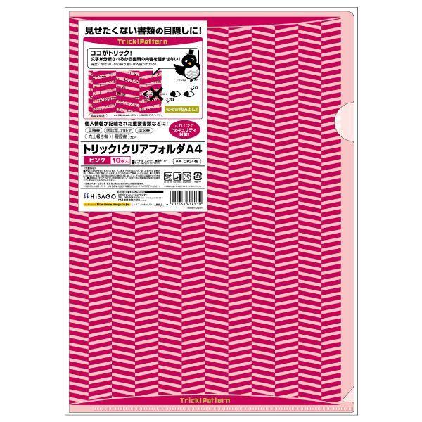【商品説明】●中に入れた書類の文字が見えにくくなる、特殊なパターン入りのクリアフォルダです。契約書や個人情報など、内容を見られたくない書類の保管・持ち運びに便利です。ブラック・ブルー・ピンクのカラーバリエーションで分類もしやすいです。●入数:10●※本製品は、すべての状況・使用形態において、完全に個人情報等の内容の保護、盗み見・改ざん・漏洩の防止を保証するものではありません。●サイズ:A4(外寸W220×H310mm)●厚さ:0.2mm●素材:PP●