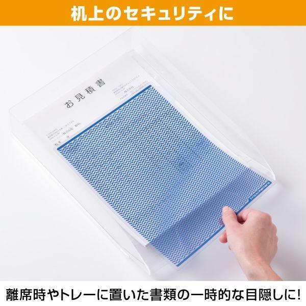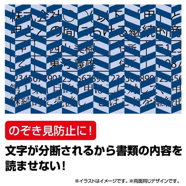 【商品説明】●下に置いた書類の文字が見えにくくなる、特殊なパターン入りのシートです。契約書や個人情報など、内容を見られたくない書類の上に置くだけで、手軽に情報を隠せます。A4サイズのクリアフォルダに収まるサイズなので、書類と一緒にフォルダに挟んで使用することもできます。●入数:1●※本製品は、すべての状況・使用形態において、完全に個人情報等の内容の保護、盗み見・改ざん・漏洩の防止を保証するものではありません。●用紙サイズ:W215×H300mm(持ち手含む)W200