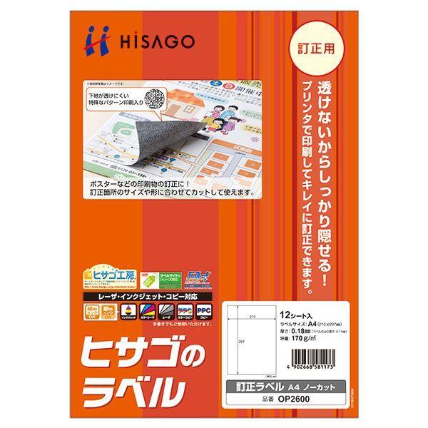 【商品説明】●のり面のパターン印刷で下地が透けにくく、訂正したい部分をしっかり隠せます。お好みのサイズにカットしてお使いください。●レーザ・インクジェット・コピー対応●入数:12●用紙サイズ:A4(210×297mm)●ラベルサイズ:210×297mm●面付:1 面●厚さ:0.18mm●ラベルのみの厚さ:0.11mm●坪量:170 g/m2●素材:上質紙