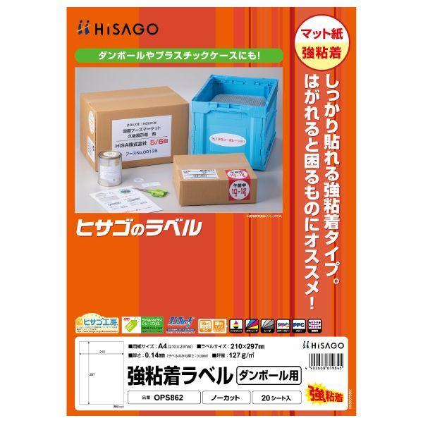 ヒサゴ OPS862 強粘着ラベル ダンボール用 A4 ノーカット 強粘着ラベルA4 20シート HISAGO