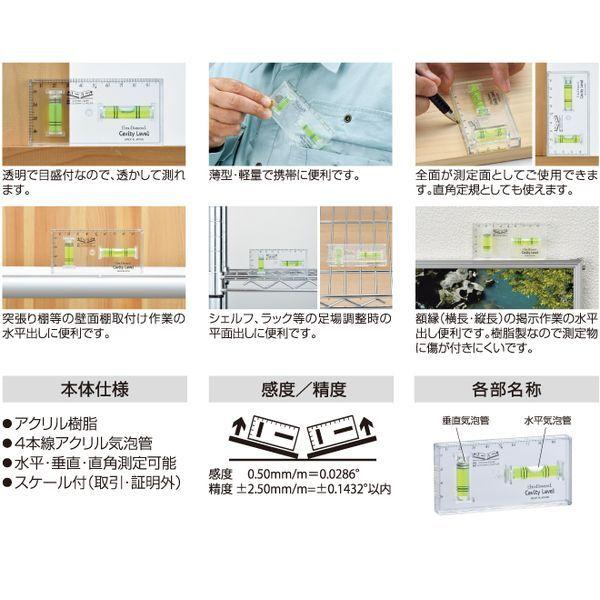 エビスメーカーお問い合わせ:0120-18-5133【商品説明】●特徴●透明で目盛り付きなので透かして測れます●薄型軽量で携帯に便利です●全面が測定面としてご使用できます、直角定規としてつかえます●突っ張り棚等の壁面棚取り付け作業の水平出しに便利です●樹脂製なので測定物にキズが付きにくいです●仕様●サイズ 100×50×12 重量 35g