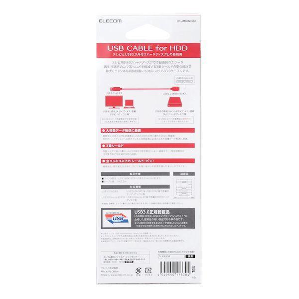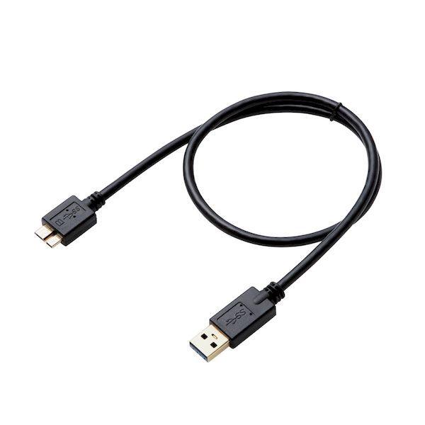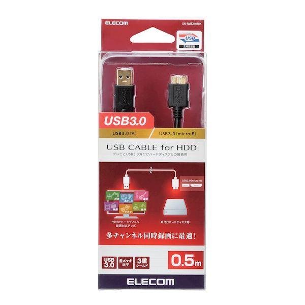 エレコムメーカーお問い合わせ:0120-898-794【商品説明】●コネクタ形状:USB3.0(Standard-A)オス-USB3.0(micro-B)オス ●対応機種:USB3.0(Aタイプ)端子搭載の外付けハードディスク録画対応テレビ及びUSB3.0(micro-B)端子搭載の外付けハードディスクドライブ等 ●ケーブル長:約0.5m ※コネクタを除く ●ケーブル太さ:4.8mm ●規格:USB3.0規格正規認証品 ●対応転送速度:最大5Gbps ※理論値 ●プラグメッキ仕様:金メッキピン・金メッキコネクタ ●シールド方法:3重シールド ●ツイストペアケーブル(通信