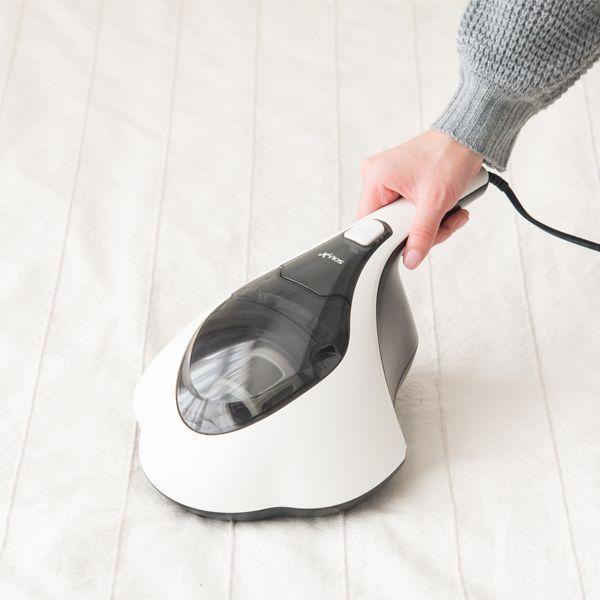 【商品説明】●UVランプ除菌・温風除菌機能・振動タップ機能付きの高機能な布団クリーナー。約50℃の温風と6WのUVランプでダニなどを99%除去することで大切な布団を菌から守ります。また、毎分4000回の振動タップ付きで、布団に絡みついた髪の毛やダニ、微細なホコリなども振動で浮かび上がらせ吸引します。普段の掃除にはもちろんのこと、花粉症などで外に布団を干せない方や、梅雨時期など連日お天気が悪く布団が干せない時にもとてもです。●振動タップで叩いて浮かび上がった微細なホコリやゴミ、髪の毛などは30Wの高吸引力で逃さず吸引します。普段外で布団を干していても、微細なゴミなどは干しただけでは取りきれないので一回の使用でかなりの効果が目に見えてわかります。●溜まったゴミはこまめに捨てると吸引力が持続するのでオススメです。溜まったゴミ捨も簡単に捨てられるので苦にならない設計になっています。ダストカップ内には99.9%集塵するHEPAフィルターと、ステンレスメッシュガードが搭載させているため、排気がとても綺麗です。●HEPAフィルター、ステンレスメッシュガードは水洗いが可能で衛生的にも安心してお使い頂けます。お手入れ後は十分に乾かしてからダストカップに戻して再度ご使用ください。●商品スペック電源:AC100V 50/60Hz消費電力:350W外部寸法:(幅) 224×(奥行)400x(高さ)130mm質量:約1.35kg(本体のみ)吸込仕事率:30W運転音:65db集じん容積:0.6リットルコードの長さ:4.0mUVライト紫外線出力:6W:波長:253.7mm保証:1年間布団クリーナー 99%除菌 UVランプ HEPA 乾燥器 超吸引 軽量 コード式 一人暮らし コンパクト 布団掃除機 布団 クリーナー ふとん ふとんクリーナー クリーナー