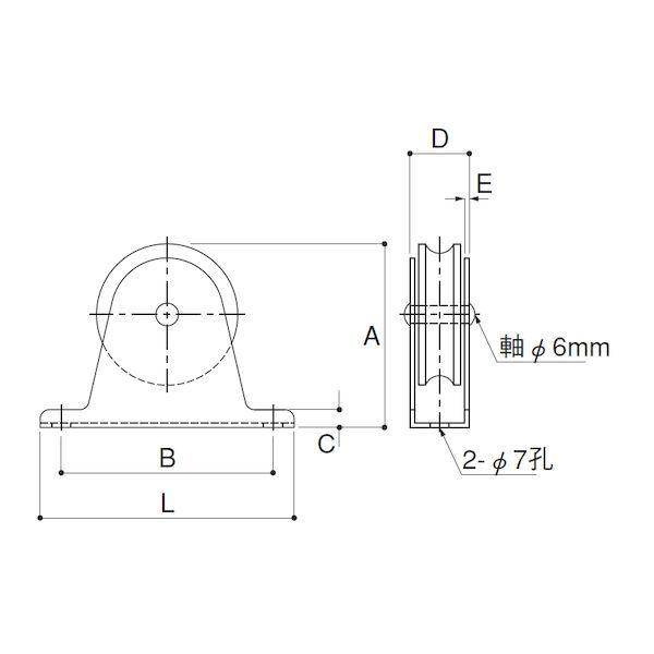 ふじわらアイオウルメーカーお問い合わせ:06-6976-3201【商品説明】●特徴:オープン型タテ型1車50mm仕様の滑車です。●材質:鉄(枠材)/ポリアセタール(車材)/モリブデングリス(使用軸受)●使用ロープ径:~12mm●使用荷重:100kg●A寸法(mm):64●B寸法(mm):75●C寸法(mm):6●D寸法(mm):20●E寸法(mm):1.6●L寸法(mm):90貨物輸送 固定滑車 ローラー 荷揚げ ブロック FUJIWARA アイオウル AIOULE フジワラ MM 水本 機械 123 ワンツースリー ひめじや ヒメジヤ