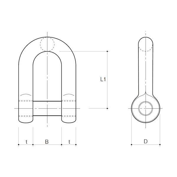 ふじわらアイオウルメーカーお問い合わせ:06-6976-3201【商品説明】●特徴:マイナスドライバーを使用して開閉するタイプの鉄製シャックルです。ねじシャックルのピンの出っ張り(摘む部分)がないので、ロープなどがひっかかりません。●材質:鉄(ユニクロ)●質量(g):1120●t(mm):22●B(mm):44●D(mm):44●L1(mm):86●使用荷重(kg):1500鎖 連結金具 連結部材 チェーンパーツ チェーンポール チェーンスタンド ポール 駐車場 パーキング 金具 金物 ジョイント DIY 部品 FUJIWARA アイオウル AIOULE フジ