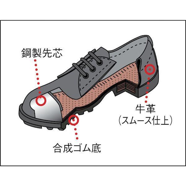 シモンメーカーお問い合わせ:0120-345-092【特長】●履き口のトップラインクッションにより、足当たりも優しくソフトな履き心地です。●ワイドな鋼製先芯で、足当たりと靴下切れを軽減します。●靴底にはNBR系合成ゴムを使用し、耐油性、耐摩耗性に優れた効果を発揮します。【仕様】●寸法(cm):26.5●足幅サイズ:EEE●規格:JIST8101CI/S/BO合格●色:ブラック●US(アメリカ)規格サイズ:9●UK(イギリス)規格サイズ:8●EU(ヨーロッパ)規格サイズ:41-42【仕様2】●JIST8101CI/S/BO合格●耐圧迫性荷重:10±0.1kN【材質/仕上】●甲被:牛革●先芯:鋼製●靴底:合成ゴム(NBR)1層【原産国】日本