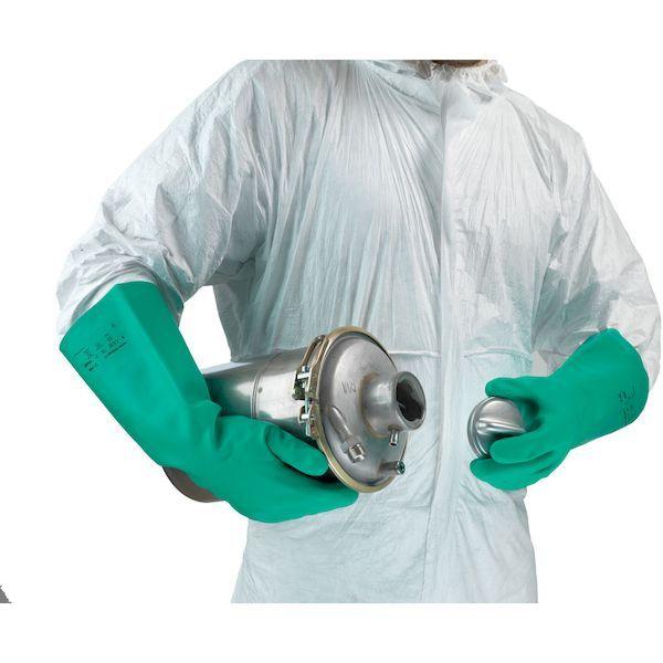 【特長】●高性能ニトリル化合物は、耐化学薬品性と強度の絶妙なバランスを実現します。●外部からの不純物の混入の影響を受けやすい生産環境に理想的です。●膨張・性能低下・劣化がなく、接触性皮膚炎を引き起こすこともありません。●高水準の柔軟性、快適な装着感、優れた指先の感覚を提供します。●内側に吹付け加工のコットンが使用されていないため、糸くずによる汚染のリスクが軽減されます。●手袋の表面をなめらかにするサンドパッチ仕上げにより、壊れやすい部品が不合格になる確率が軽減され、間接コストの削減につながります。【用途】●自動車関連。●機械および機器。●化学薬品の取り扱い。●重作業の清掃。●工具またはロボットの塗装または洗浄。●工具と金型の変更。●原料の充填、混合、充電。●ポンプのバルブとラインの開口および排水。●容器、タンクおよび加工機器間の液体と固体の移動。●出荷品の取り扱い。(缶、容器、バルク包装品、段ボール箱)【仕様】●色:グリーン●サイズ:L●厚さ(mm):0.6●全長(cm):38.0●手のひら周り(cm):23.4●中指長さ(cm):8.1【仕様2】●EN388:2003規格:耐摩耗レベル4、耐切創レベル1、耐引裂レベル0、耐突刺レベル2●EN388:2016規格:耐摩耗レベル4、耐切創レベル1、耐引裂レベル0、耐突刺レベル2、EN ISO耐切創レベルX●EN374:2016規格:Type A、AGJKLPT●ASTM F 739(JIS T 8116)試験データあり【材質/仕上】●ニトリルゴム(NBR)【原産国】マレーシア