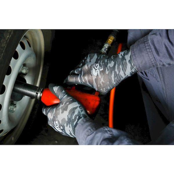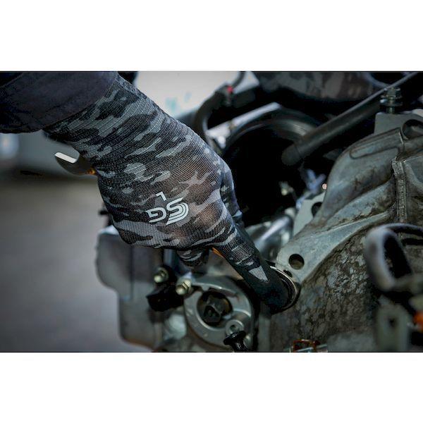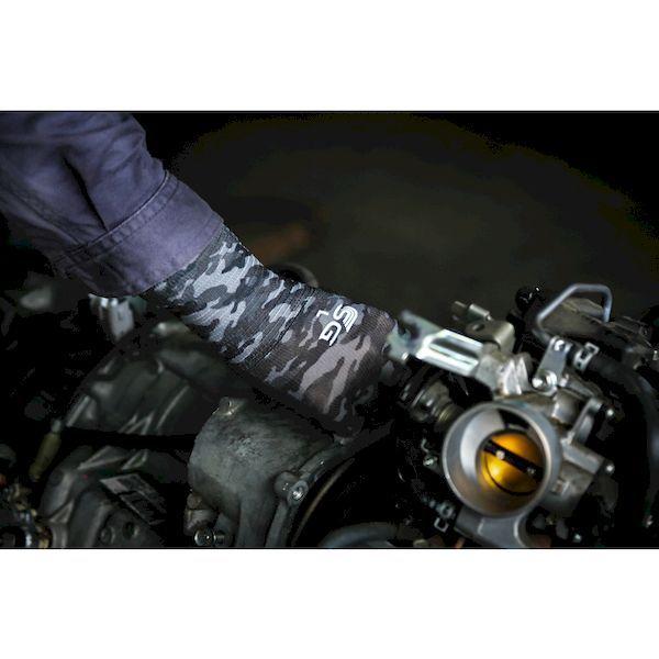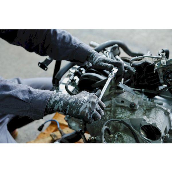 東和コーポレーションメーカーお問い合わせ:0120-62-1001【特長】●ニトリルゴムをコーティングしているため、突き刺し・引っ掻きに強く、耐摩耗性に優れています。●通気性を重視した特殊すべり止め(マイクロフィニッシュ[[R上]])加工を施しており、甲部やコーティング部分も通気性があります。●特殊すべり止め(マイクロフィニッシュ[[R上]])加工で、ドライ・ウエットでもグリップ力を発揮します。●13ゲージの薄手タイプで、細かい作業に適しています。【用途】●機械メンテナンス。●組立作業。●土木建築、建設機械操作。●農作業、園芸。●運送倉庫での軽作業。【仕様】●色:迷彩グレー/ブラック●サイズ:LL●厚さ(mm):約1.1●ゲージ数:13●全長(cm):25.0●手のひら周り(cm):18.4●中指長さ(cm):7.8【仕様2】●13ゲージ編【材質/仕上】●繊維部:ポリエステル●すべり止め部:ニトリルゴム【原産国】中国