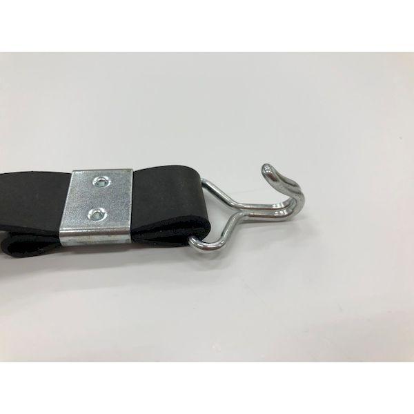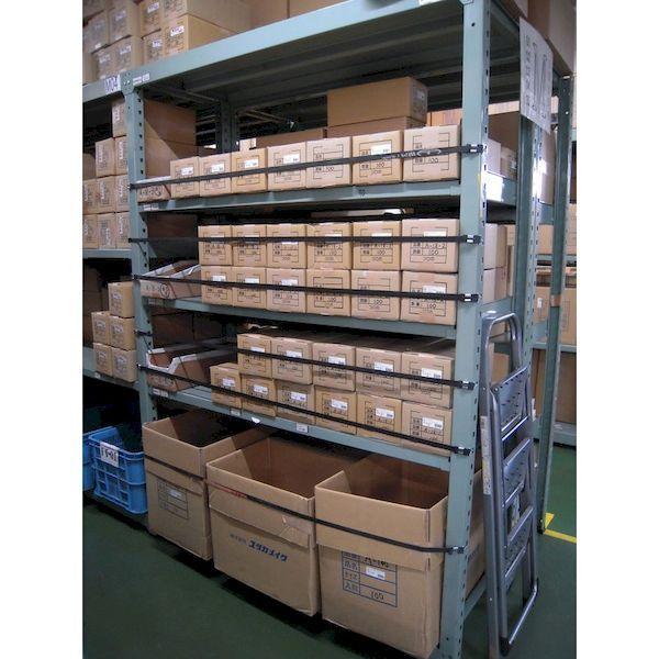 【特長】●伸縮性があり、収納品の取り出しも簡単です。●フック式のため取り付けが簡単です。【用途】●棚上の商品の落下防止に。【仕様】●幅(mm):20●長さ(m):0.96●適用棚間口(mm):1200●色:ブラック【仕様2】●両端2本線カギフック付●先端金具幅寸法:約6mm●先端金具開口寸法:約9mm【材質/仕上】●バンド:合成ゴム●フック:スチール【原産国】日本