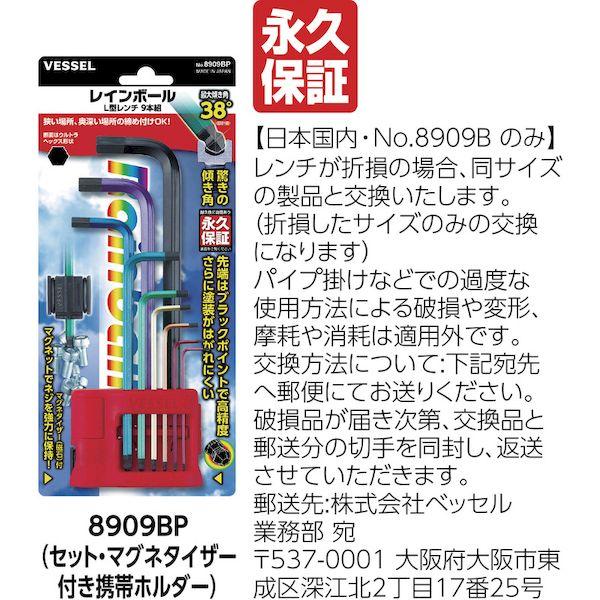 ベッセルメーカーお問い合わせ:0120-999-914【特長】●工具箱の中で探しやすいように、サイズごとに色分けをしています。●断面は3点3面接触形状の「ウルトラヘックス」を採用し、ねじ穴の変形を低減しました。●先端は、トルク伝達が良くねじを傷めないウルトラヘックス[[R上]]形状です。●駆動部は、メッキの厚みの影響を受けないブラックポイント[[R]]で高精度になっています。【用途】●各種メンテナンスや治具の交換作業での六角穴付ネジ締め付け作業に。狭い場所や奥深い場所の締め付けに。【仕様】●対辺寸法(mm):6.0●首下寸法(mm):31●全長(mm):138.0●セット内容(mm):H6.0●セット内容(本):1●柄色:青【材質/仕上】●本体:特殊合金鋼【注意】●正しい用途・サイズ・使い方を確かめてご使用ください。●電気作業では、ショート・感電にご注意ください。●過負荷は、ネジの破損やけがの原因となります。●ご家庭では、お子様に注意して保管してください。【原産国】日本