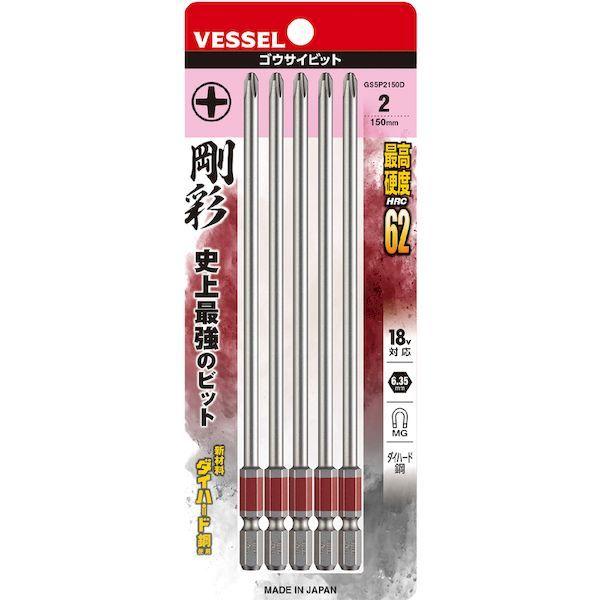ベッセルメーカーお問い合わせ:0120-999-914【特長】●剛彩ビット用に開発した印刷機により六角面すべてにカラー印刷、塗装品のようなにじみがなくシャープなエッジで、VESSELロゴもクリアに表示されています。●10色カラーでサイズを色分けし、ビットが選びやすくなっています。●ビット材はダイハード鋼(最高硬度HRC62)を使用しています。●強くてしなやかなで耐久性は抜群です。●精緻な刃先加工で高い嵌合性を実現しました。●刃先部分にはメッキや塗装がつかないためネジとの食いつきが良く、様々なネジにフィットします。●狭い箇所での作業に便利な細軸タイプです。【用途】●建築、電気、機械組立・整備、精密組立、DIYに。【仕様】●色:赤●刃先:[[+]]2●全長(mm):150●セット内容:5本●セット内容(本):5●シャンク径(mm):6.35【仕様2】●ダイハード鋼●マグネット入り●18V対応●差込軸:6.35mm●軸色:赤●片頭●18Vインパクト対応【材質/仕上】●ダイハード鋼(最高硬度HRC62)【注意】●作業時は、保護メガネを着用してください。●必要以上に無理な力で使用しないでください。●工具は、本来の使用目的以外で使用しないでください。●電流が流れているものには使用しないでください。●正しい用途・サイズ・使い方を確かめてご使用ください。【原産国】日本