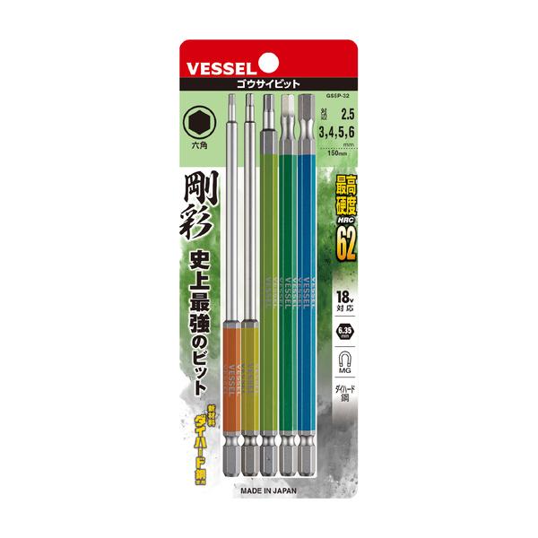 ベッセルメーカーお問い合わせ:0120-999-914【商品説明】●10色カラーでサイズを色分けし、ビットが選びやすい。●精緻な刃先加工で高い嵌合性を実現。●ビット材はダイハード鋼(最高硬度HRC62)を使用。強く、しなやかなで耐久性は抜群。【用途】●建築・設備●マグネット入り●対辺2.5,3,4,5,6×150mm