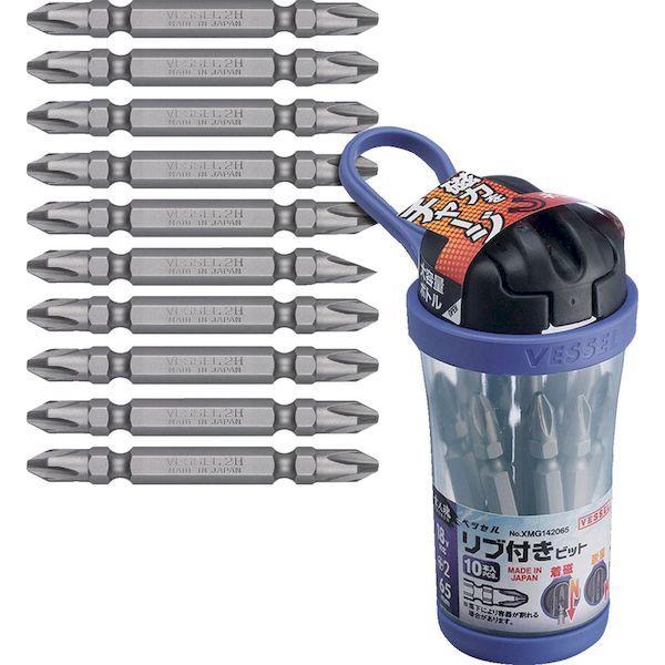 ベッセルメーカーお問い合わせ:0120-999-914【特長】●印刷マークやカラースリーブを省いた、実用向けのセットです。●キャップにビットの着磁・脱磁ができるマグネタイザーがついたボトル入りです。●ビットは強化リブ付き刃先で折れ・曲がりに強くなっています。●ネジ締め時の振動や熱で低下したビットの磁力を着磁できます。●ビットを一本ずつ取り出せます。【用途】●ドリルネジやタッピングなどの重作業に向いています。【仕様】●刃先:(+)no.2●全長(mm):111●セット内容:[[+]]2×65mm(10本)、マグボトル(1個)●ボトルサイズ(mm):53×100×111●シャンク径(mm):6.35●幅(mm):53●奥行(mm):100●軸寸法(mm):65●ボール溝(mm)●マグネット●熱処理区分【仕様2】●シャンク径:6.35mm●18Vインパクト対応●両頭ビット●ボトルキャップ部:マグネタイザー付き【材質/仕上】●ボトル:ポリプロピレン、合成樹脂 ●ビット:工業用特殊合金鋼【注意】●落下により容器が割れる場合があります。●完全に磁力を抜くことはできません。【原産国】日本