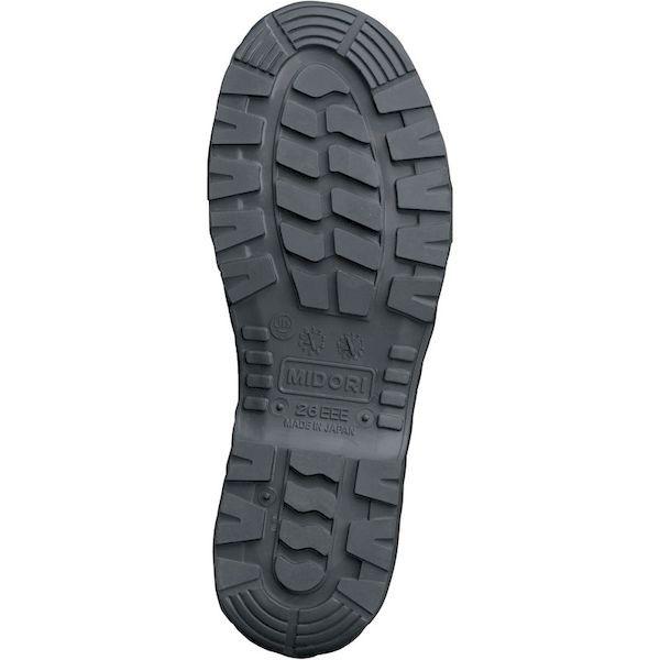 ミドリ安全メーカーお問い合わせ:048-989-3177【特長】●ゴム底の耐熱性・耐久性はそのままに、発泡ゴムとの2層底で優れたクッション性と軽量化を実現しました。●熱に強い裏出し革をアッパー材に採用しました。●袋ベロ構造になっています。●JIS耐滑性能「F」合格の滑りにくい靴底です。●親指をまっすぐに伸ばして、快適に着用できるワイド樹脂先芯を使用しています。【用途】●あらゆる製造現場に。【仕様】●寸法(cm):27.0●足幅サイズ:EEE●色:ブラック●耐圧迫荷重(kN):10±0.1●US(アメリカ)規格サイズ:9●UK(イギリス)規格サイズ:9●EU(ヨーロッパ)規格サイズ:44【仕様2】●JIS T8101 C1/S/P1/F1【材質/仕上】●甲被:牛クロム革(裏出し)●先芯:ワイド樹脂●靴底:ラバー2層【注意】●中敷きを交換する場合は、ミドリ安全が推奨する同等品を使用してください。(JIS T8101安全靴の規定より)【原産国】日本