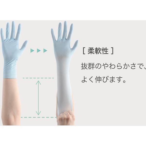 ミドリ安全メーカーお問い合わせ:048-989-3177【特長】●独自開発した新技術による加硫促進剤不使用の商品です。●優れた伸張性により弱い力でもスムーズな装着を実現しました。●極薄タイプながら十分な強度を兼ね備えています。●手袋の指先に触れることなく衛生的に取り出せます。【仕様】●色:ブルー●サイズ:S●厚さ(mm):0.06●全長(cm):24●手のひら周り(cm):17●中指長さ(cm):7.6●粉(あり・なし):無し●食品衛生法:適合品【仕様2】●極薄タイプ【材質/仕上】●ニトリルゴム【原産国】マレーシア