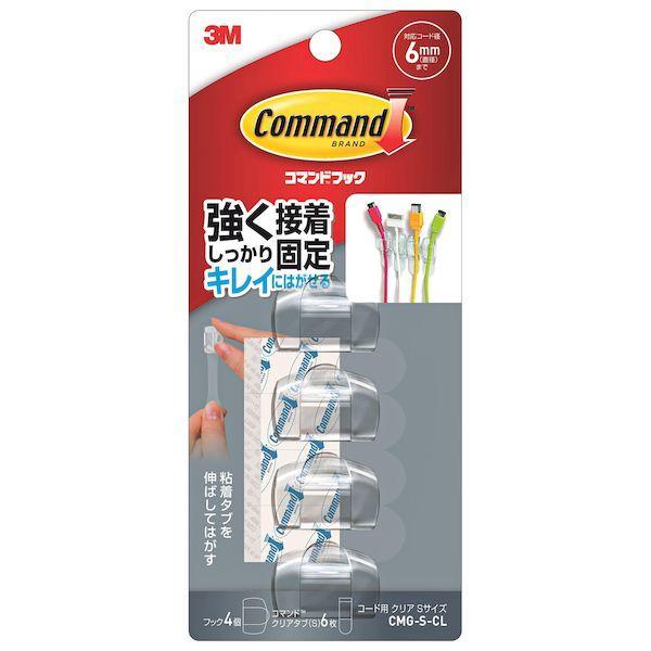 3Mメーカーお問い合わせ:0570-011-211【商品説明】●強く接着、しっかり固定できる透明のフックです。●キレイに剥がすことができます。●対応コード径 6mm(直径)まで●コードを壁にかける際にお使いください。●【取り付けられるところ】●板壁、柱、家具・机(木・スチール製)、ステンレス、冷蔵庫などの金属塗装面、粘着タブよりも大きいタイル、ガラス、人工大理石、プラスチック、化粧板(プリント紙合板等、材質によってつきにくいものがあります。接着面を消しゴムでこすると付きやすくなります。※表面の加工が落ちる場合があります。)●【取り付けられないところ】●壁紙(塩ビ製、布製、紙製など)、土壁、砂壁、天然大理石、直射日光のあたるガラス、レンジまわり、40℃以上の高温になるところ、ワックス・フッ素・防カビ加工などの特殊加工のしてあるところ、水分・油分・汚れの付着しているところ、塗装のはがれやすい面、浴室や屋外など、雨や水がかかるところ。●4個入り●フック:ポリカーボネート●タブ:ポリエチレン基材、ゴム系粘着剤