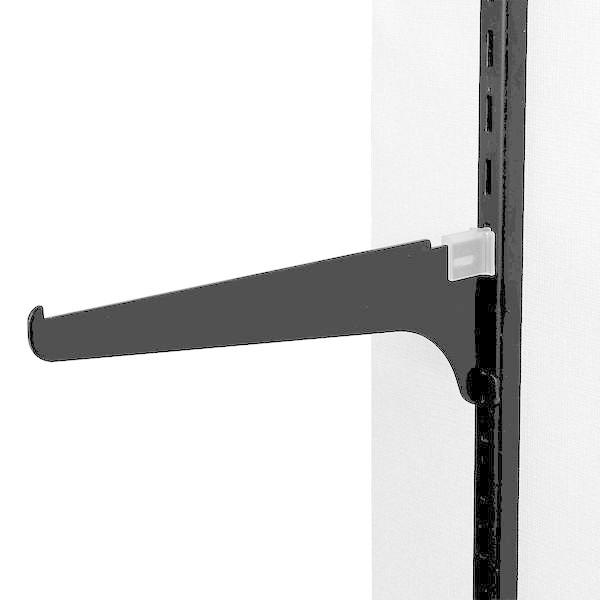 【商品説明】●1×4材を棚板として使用できます。●外れ止めのストッパーがつくので叩かなくても良いです。●背面取り付けタイプの支柱を使用してください。【商品用途】●棚板の取り付けに使用してください。【カラー】●黒【商品サイズ】●サイズ:200mm