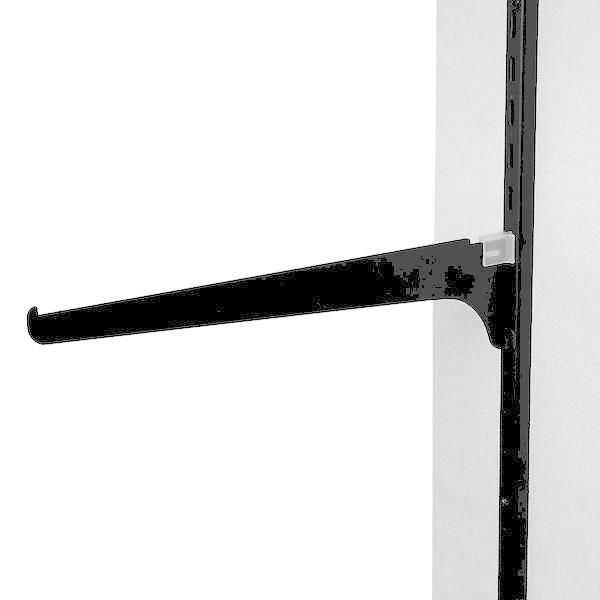【商品説明】●1×4材を棚板として使用できます。●外れ止めのストッパーがつくので叩かなくても良いです。●背面取り付けタイプの支柱を使用してください。【商品用途】●棚板の取り付けに使用してください。【カラー】●黒【商品サイズ】●サイズ:300mm