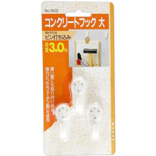 【商品説明】●硬い壁にも取付簡単●強力ピン(スウェーデン鋼)を使用●カナズチで打ち込むだけで簡単に取り付けられます。●タオル、ハサミ、小道具などを掛けるのに便利です。【商品用途】●コンクリートフック大は、スウェーデン生まれ。シンプルなデザインで、コンクリートなどの硬い壁に強力に固定。どなたでも簡単に取りつけられます。●【取り付けられる所】・コンクリート・タイル目地・ブロック塀・レンガ【注意】●【取り付けられる所】・コンクリート・タイル目地・ブロック塀・レンガ【商品仕様】●取り付けられない所:土壁・しっくい【商品サイズ】●厚み:18mm●幅:20mm●高さ:40mm【材質】●ナイロン、スチール