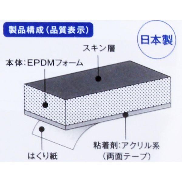 イノアックリビングメーカーお問い合わせ:03-3492-9214【商品説明】●半連泡構造で低反発性があります。●温度変化に関係なく硬さが一定。●長期間シール性を持続します。●表面に強度のあるスキン層があります。●ソフトな素材なのに切れにくく丈夫。●水密性、気密性、耐候性に優れる。●住宅・建築に。住宅用パネル目地材、住宅用サッシ・ドアパッキン材、目地材など。●自動車・船舶に。トランクシール、ボンネットシール、各種ダクトシール・防水シールなど。●断熱・保温用途に。冷蔵庫・保冷庫・クーラーボックスのパッキン材、冷凍ショーケーススール材など。●防水・防湿・防音用途に。水槽シール材、騒音防止シール材、電気器具防水防湿パッキン材、防音壁パッキン材●10℃以上の温度のときに作業してください。●貼る前に、汚れや水・油脂分などをよく拭き取ってください。●また、ザラザラ面、凹凸面や表面に水分・油分があると正常な接着力が発揮できませんのでご注意ください。●接着面に触れたり、貼り直すと著しく接着力が落ちます。●用途以外には使用しないでください。●保管は幼児の手の届かない場所で、直射日光の当たらない、涼しい場所においてください。●カラー:黒●厚さ(mm):5●幅(mm):10●長さ(m):2●EPDM、粘着剤/アクリル系粘着剤