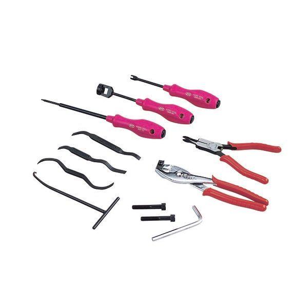 【商品説明】●入組数:12点●重さ(kg):1.1●トレイサイズ(mm):W335xD230xH45●軽自動車から小型トラック(2tクラスまで)に使用されているドラムブレーキ装置のセットです。● ATBX6と並べてツールステーションに納まります。●ドラムブレーキ用。【セット内容/付属品】テンションスプリングツール(AB-7)、Cワッシャツール(ABX-31)、パーキングシューレバーツール(ABX-32)、シューホールドスプリングツール(ABX-33・34)、テンションスプリングツール(ABX-35)、ブレーキシュー調整ツール(ABX301・302・303)、ハイグレードL形スタンダード六角棒レンチ(HLD100-6)、ブレーキドラム取外しツール六角穴付ボルトM8x2本(ATBX14-1)、トレイ