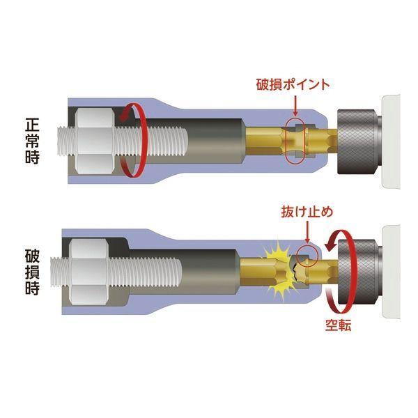 【特長】●ビットにヒューズ機構を採用することで、破損しても先端部分(ソケット)の落下を防ぎます。●破損時の脱着もスムーズです。●ボルト・ナットをより素早く締結できる12角タイプです。【用途】●ボルト・ナットの締結。【仕様】●軸寸法(mm):6.35●全長(mm):101●対辺寸法(mm):19●外径(mm):26●ソケット外径(mm):26●ナット受部深さ(mm):20.5【材質/仕上】●特殊工具鋼【原産国】日本