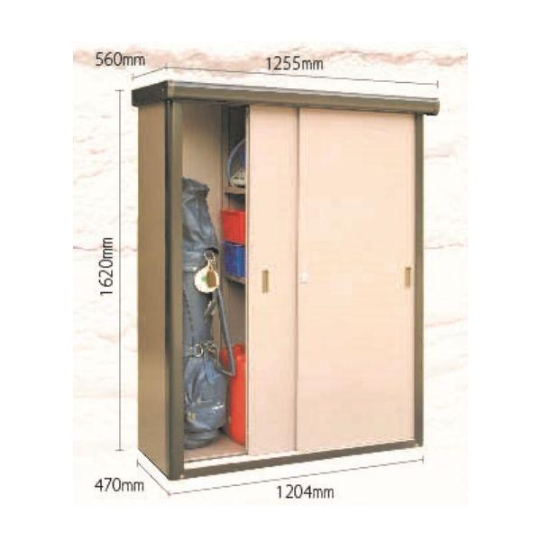 【商品説明】●特徴:用途に合わせて棚板の位置を変えられる、丈夫で使いやすい物置収納庫です。 150cmの脚立やゴルフバックも収納可能です。扉の開閉がスムーズです。間口2/3サイズの棚板2枚付き(自由棚2枚6段可能)で自由なレイアウトが可能です。●材質:亜鉛処理鋼板(アクリル塗装)●色(カラー):メタリックホワイトブロンズ●鋼板仕様:鋼板0.6mm●扉タイプ:2枚引戸●対応地域:一般地用●仕様:組立式●本体サイズ:間口×奥行×高さ(mm):1255×560×1620●内部サイズ:間口×奥行×高さ(mm):1198×395×1570●土台サイズ:間口×奥行(mm):1200×470●本体重量(kg):65●床面積:0.17坪(0.56m2)●生産国:日本付属品組立説明書●必要ブロック数:6個(半ブロック)※注意:お客様にて組立となります。※1階での引き渡しとなります(上位階への配送は対応できません)。※4t車通行不可の場合別途追加料金が発生する場合がございます。また特殊地域、配送不能区域などについても別途追加料金が発生するケースがございます。※個人宅配送が配送地域や4t車通行不可により配送不可の場合もございますので、発送前にご確認お願い致します。※掲載商品の写真・画像・映像の色・形状・質感等が、実際の商品と異なる場合がございます。 ※基礎ブロックは付属しておりません。家庭用物置 物置・屋外 おしゃれ 物置き 大型 小屋 小型 サンキン ダイケン 物置 ヨド物置 タクボ物置 イナバ物置 グリーンライフ 物置 タカヤマ物置 ガレージ物置 収納物置 ベランダ物置 庭 物置 小型物置 自立物置 両開き スリム 小型物置 屋外物置 収納庫 倉庫 アイリスオーヤマ 物置 屋外収納庫 屋外倉庫 庭 ベランダ 物置収納 収納 物置き ベランダ物置 ロッカー ホームロッカー おしゃれ 物置 大型 大型物置