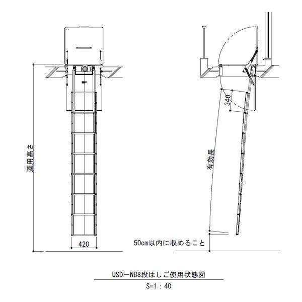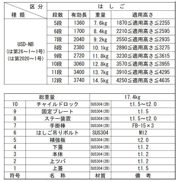 ●特徴:緊急時にバルコニーから安心安全に避難できる避難器具です。はしごの揺れがより少なくなった半固定。チャイルドロック(安全装置)仕様で、収納時は上蓋を閉めるとチャイルドロックも同時にロックします。避難口は、避難上有効な、直径500mm以上の円が内接する大きさを有しています。]●用途:マンション、アパート、工場、倉庫、施設等のベランダの非常用避難ハッチ、避難はしご※注意:※枠、はしご等の取り付けはお客様にて確実に施工して下さい。※消防申請・検査等はついておりません!●セット内容:USD-66NB+SD-8●枠(型名):USD-66NB●はしご(型名):SD-8●避難口寸法(内寸)(mm):600×600●枠厚さ(H寸法)(mm):200●枠重量(kg):17.4●枠材質:SUS304(2B)●枠認定番号:Hh-109(全国避難設備工業会)●適用階高(mm):2890≦3275●はしご有効長(mm):2380●はしご重量(kg):10.1●はしご段数:8●はしご材質:鉄(三価クロメート処理+カチオン電着塗装)●はしご認定(国家検定合格品):は第2020~1号ベランダ避難ハッチ 避難はしご ベランダ避難器具 マンション避難はしご ヤマトプロテック 避難ハッチ オリロー 避難ハッチ ORIRO 避難ハッチ ナカ工業 タスカール ナカ工業 避難ハッチ マルニシ避難ハッチ 城田鉄工 避難器具 タスカールSPC SPCハッチ 避難はしご 避難梯子 セフテック 避難はしご セフテック 避難ハッチ ベランダ用避難はしご
