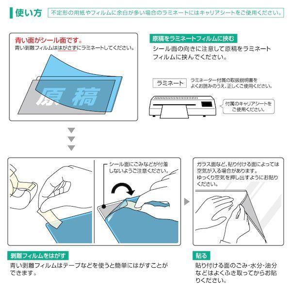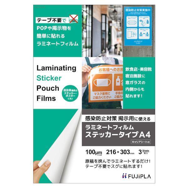 【商品説明】●片面がシールになった、ステッカータイプのラミネートフィルムです。POPや掲示物をラミネート後すぐに貼り付けられます。●感染防止徹底宣言ステッカー、ポスターの掲示に!●シール面も透明なので、窓の内側からでもキレイに掲示できます。●のりのはみ出しによるフィルムづまりを軽減するキャリアシート付き。●サイズ:216×303mm●フィルム厚:100μm●入数:3シート