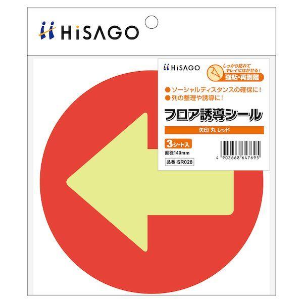 ヒサゴ SR028 フロア誘導シール丸矢印レッド 3入