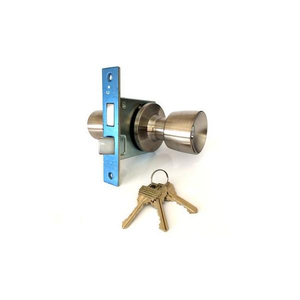 【商品説明】●インテグラル錠 UCシリーズ●仕様:玄関錠●バックセット:57mm●フロントサイズ:H130mm×W25mm●握玉(ノブ):E型●勝手:左右、内外共通●シリンダー:5本ピンシリンダー●取付可能扉厚:33mm以上~43mm未満●室内側:ノブ(サムターン)●室外側:ノブ(シリンダー)●材質/仕上:ステンレスヘアーライン(S11)●キー:3本付