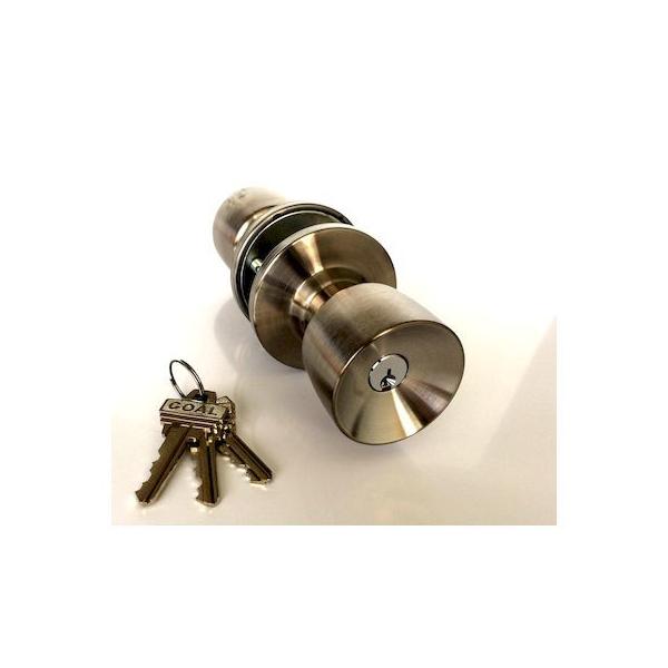 【商品説明】●インテグラル錠用 玉座セット●仕様:玄関錠用●握玉(ノブ):E型●シリンダー:5本ピンシリンダー●取付可能扉厚:33mm以上~43mm未満●室内側:ノブ(サムターン)●室外側:ノブ(シリンダー)●材質/仕上:ステンレスヘアーライン(S11)●キー:3本付