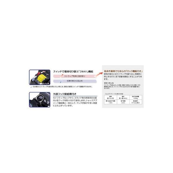 【特長】●2WAY機能でストラップの引き出しモードを変更できます。●巻取器にはロック機構を標準装備しており、落下距離を気にするユーザー様にご好評頂いております。●また、トリプルロック方式のワンタッチバックルを採用しており、人為的操作が加わらない限りは外れません!【仕様】●色:ブラック●フック口開き(mm):50●ランヤード寸法 長さ(mm)(フック含む):1650●フック:No.56(本体:スチール、グリップカバー:アルミ)【仕様2】●厚生労働省「墜落制止用器具の規格」適合品●ロック機構付き巻取式ランヤード●ワンタッチバックル仕様●最大使用可能質量:100kg●第一種ショックアブソーバ【原産国】日本