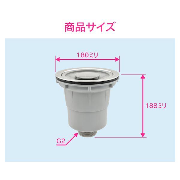 カクダイメーカーお問い合わせ:06-6538-1124【商品説明】●キッチン用の流し台排水トラップです。●【特長】取付穴径:158ミリ(絞り段外径181ミリ)●取付はさみ込み厚:最大1.5ミリ●対応排水口径:180ミリ●排水口からの臭気を防ぎます。●マンションやアパートなどの賃貸住宅の原状回復に最適です。●生産国:日本●材質:ポリプロピレン、ステンレス●使用温度:1~60℃