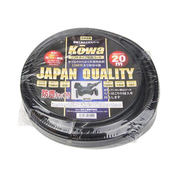 【商品説明】ソフトタイプ電線の延長コードです。【用途】15A3ッ口20メートル屋内型延長コード。【機能・特長】耐寒性に優れたやわらかい電線を使用した延長コードです。環境にやさしい鉛フリー製品です。冬でも固くなりにくいソフトコードです。防塵型なので、差込口へのちり、ほこりの進入を防止できます。【材質】導体:銅線。栓刃:黄銅。被覆:塩化ビニル。【仕様】●定格:15A・125V。●コンセント:2PX3ツ口。●色:黒。●電線サイズ:VCT2芯X1.25sq。●長さ:20M。●屋内用。【注意事項】このコードは合計1500W以下で使用して下さい。この製品は屋内型です(屋外・湿気の多い場所では決して使用しないで下さい)。濡れた手でのプラグなどの抜き差しは決してしないで下さい。プラグはきっちりと差し込んでお使いください(接触不良で発熱する原因となります)。コードは束ねて使用したり、上から物を載せないで下さい(焼損の恐れがあり、火災の原因になります)。