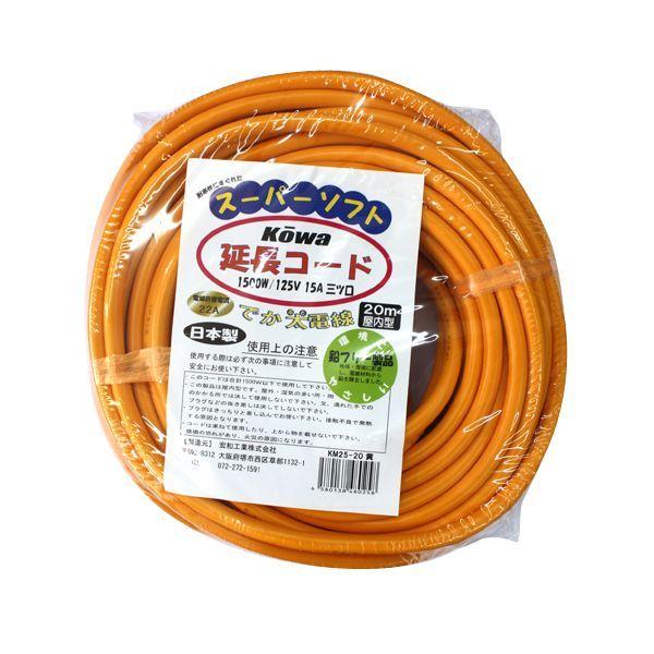 【商品説明】延長・タコ足による電圧降下を軽減する極太電線仕様です。【用途】15A3ッ口20メートル屋内型延長コード。【機能・特長】耐寒性に優れたやわらかい電線を使用した延長コードです。環境にやさしい鉛フリー製品です。冬でも固くなりにくいソフトコードです。【材質】導体:銅線。栓刃:黄銅。被覆:塩化ビニル。【仕様】●定格:15A・125V。●コンセント:2PX3ツ口。●色:黄。●電線サイズ:VCT2芯X2.0sq。●長さ:20M。●屋内用。【注意事項】このコードは合計1500W以下で使用して下さい。この製品は屋内型です(屋外・湿気の多い場所では決して使用しないで下さい)。濡れた手でのプラグなどの抜き差しは決してしないで下さい。プラグはきっちりと差し込んでお使いください(接触不良で発熱する原因となります)。コードは束ねて使用したり、上から物を載せないで下さい(焼損の恐れがあり、火災の原因になります)。