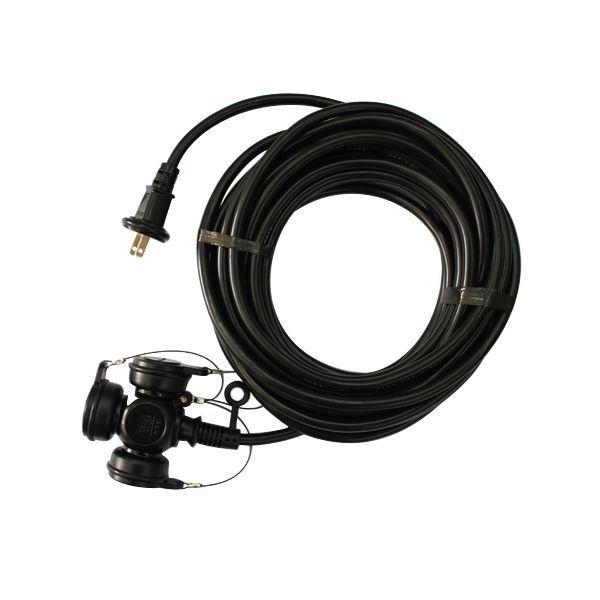 【商品説明】雨の日も安心な防雨型延長コードです。【用途】15A3ツ口10メートル防雨型延長コード。【機能・特長】耐寒性に優れたやわらかい電線を使用した延長コードです。屋外型の防雨型延長コードです。【材質】導体:銅線。栓刃:黄銅。被覆:塩化ビニル。【仕様】●定格:15A・125V。●コンセント:2PX3ツ口。●色:黒。●電線サイズ:VCT2芯X1.25sq。●長さ:10M。●屋外型。●防雨キャップ付。【注意事項】このコードは合計1500W以下で使用して下さい。濡れた手でのプラグなどの抜き差しは決してしないで下さい。プラグはきっちりと差し込んでお使いください(接触不良で発熱する原因となります)。コードは束ねて使用したり、上から物を載せないで下さい(焼損の恐れがあり、火災の原因になります)。