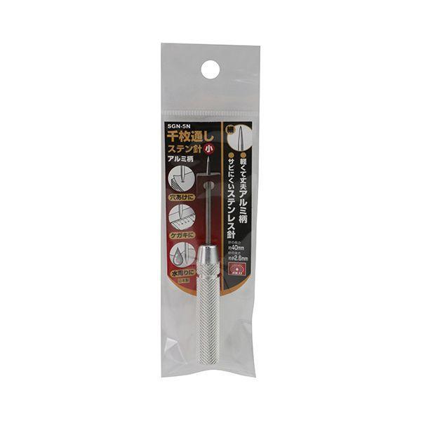 【商品説明】軽量なアルミ柄タイプで、針はサビにくいステンレス針になります。【用途】穴あけ・ケガキ・水回りでの作業等。【機能・特長】アルミ柄なので、軽量で丈夫になっています。針はステンレス材を使用し、水回りで作業をしても、サビにくい仕様になっています。【材質】針:ステンレス。柄:アルミ。【仕様】●針長:約40mm。●針の太さ:約2.6mm。【注意事項】表示用途以外には使用しないでください。針先は鋭利ですので取り扱いには十分注意して下さい。子供の手の届くところには置かないで下さい。電気の流れているものには使用しないで下さい。こじったりテコとして使用しないで下さい。変形や破損の原因となります。金属などの硬い物、ガラス・プラスチックなど割れやすい物には使用しないで下さい。作業中は保護メガネ・手袋を着用して下さい。ハンマーなどで叩いたりしないで下さい。