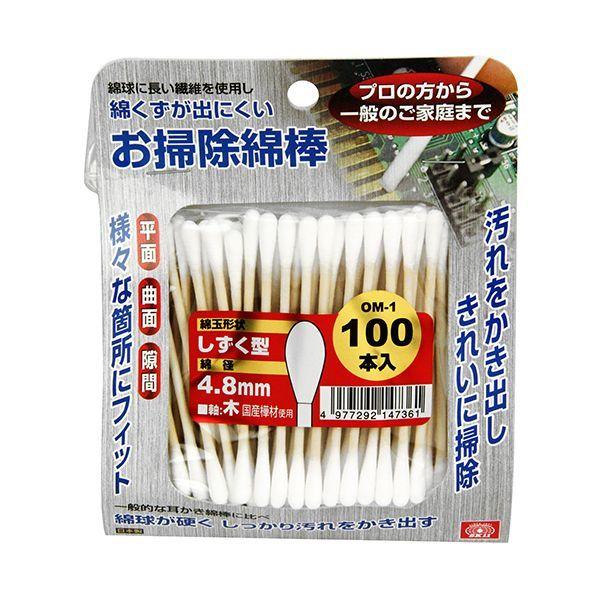 【商品説明】綿球が硬く、綿くずが出にくい、清掃作業に特化した工業用綿棒です。【用途】家庭内の窓サッシや家電製品・音響機器などの清掃作業。【機能・特長】プリンターなど、センサーが付属した精密機器の清掃作業にも使えます。プラモデル製作時の塗料の拭き取り・細かい部分への塗り作業にも便利です。耳かき綿棒に比べ、有機溶剤や水をつけても、綿球部分が硬く崩れしにくく、綿くずが出にくくなっています。【材質】綿球:綿・レーヨン混紡。軸:国産樺材。【仕様】●綿球:しずく型。●綿球サイズ:4.8mm。●100本入。【注意事項】滅菌処理を施しておりませんので、人体へは使用しないで下さい。使用方法、状況、対象物によっては、キズが入ることもありますので、精密機器に使用される際には、十分に注意してお使い下さい。有機溶剤を使用される際には、取扱いに十分ご注意下さい。溶剤につけると、綿球部分が脱落する可能性があります。溶剤につけたまま放置するのは危険ですので、お止め下さい。