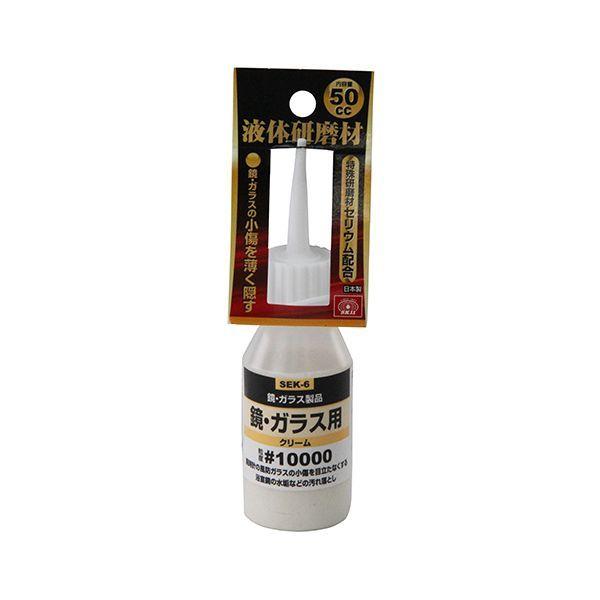 【商品説明】酸化セリウムを配合し、鏡の汚れやガラスの小傷を薄く目立たなくします。【用途】鏡の水垢落し、ガラスの小傷落し。【機能・特長】鏡に付着した水垢などの汚れを落とします。ガラス製品の小傷を薄く目立たなくします。研磨剤をウエスなどに付着させ、汚れや傷が目立たなくなるまでこすります。【材質】主な成分:酸化セリウム・水・活性剤・増粘【仕様】●内容量:50cc。●水溶性。【注意事項】使用用途以外では使用しないでください。また、使用前には、使用上の注意を必ず確認してからご使用ください。本製品は、あくまでも小さな傷を目立たなくさせる効果を持ちます。すべての小傷に効果を発揮するわけではありません。また、高額なガラスや光学レンズ・硬質ガラスなどの特殊なものにはご使用頂けません。新品および、新品同様のもの、光沢のあるもの、キズが入ると困るものには使用しないでください。また、表面を特殊加工した素材には使用しないでください。対象物の状態や使用方法などによっては、対象物にキズが入ることがありますので、使用前には必ず支障のない部分で試してからご使用ください。