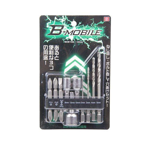 【商品説明】ねじ回し、ボルト回し、穴あけが出来るビットセットです。【用途】ボルト回し・ネジ締め作業。【機能・特長】ドリルドライバーやインパクトドライバーなどに取り付けてねじを回せます。鉄工ドリルで薄い鉄板や木、樹脂に穴あけが出来ます。10本入りです。【仕様】●ビット3本、ソケットビット3本、鉄工ドリル4本、ホルダー付き。