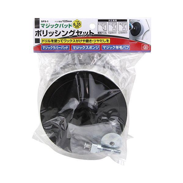 【商品説明】ワックスがけや磨き、つやだしをドリル使って楽に出来ます。【用途】磨き作業。【機能・特長】電気ドリルなどの回転で簡単に磨き作業ができます。研磨剤を塗布して艶出しや傷消しが出来ます。木製品や金属製品の表面に便利です。【仕様】●六角軸:6.35mm。●パッド直径:125mm。●対応機種:電気ドリル・ドリルドライバー・インパクトドライバー。【注意事項】本製品は簡易研磨用です。本格的な磨き作業は専用のポリッシャーやランダムサンダーで行って下さい。研磨剤やコンパウンド、ワックスなどは用途にあった市販のものをご使用下さい。高価なものや車の研磨は十分に注意し目立たないところで試してからご使用下さい。ご使用前に中刷りの「取付方法」「使用上の注意」をお読み下さい。また、電動工具本体の取扱説明書をよく読み正しくご使用下さい。