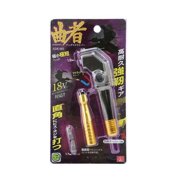 【商品説明】奥まった所などで、まっすぐにビスやねじが打ち込めない時に90度の角度をつけて打ち込みます。【用途】接合金具やカーテンボックス等の取り付け作業。【機能・特長】材質をリニューアルし高耐久強靭ギアーで長寿命です。マグネットチャックは最短38mmを実現し、狭い場所も難なく作業が行えます。握りやすく固定しやすいアルミハンドル付きです。ワンタッチクイックチャックは電動工具のビットを取らずに曲者を装着して作業効率アップできます。18Vインパクトドライバーにも対応しています。【材質】本体:アルミダイキャスト。【仕様】●極小極短ヘッド38mm。●本体取り付け側:ワンタッチクイックチャック。●17mm片頭ビット。●先端取り付け側マグネットチャック。【注意事項】マグネットチャックについて、ビットは奥までしっかりと差し込んでください。抜く際はペンチ等でつかんで引き抜いてください。ホールソー・ソケットビット・大径木工ドリル、その他過度のインパクトがかかる作業は破損の原因になりますのでご使用できません。本製品は品質向上や安全のため予告なく仕様を変更することがあります。