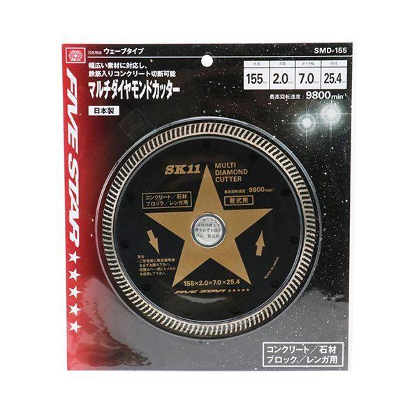 【商品説明】幅広い素材に対応し、鉄筋入りコンクリート切断可能なマルチタイプダイヤモンドカッターです。【用途】コンクリート・御影石・大理石・磁器タイル・ブロック・レンガの切断作業。【機能・特長】特殊な側面ウェーブ形状により切粉の排出がよく、作業能率が向上します。コンクリートの切断に最適なダイヤモンドチップを採用し、抜群の耐久性と切れ味が得られます。【材質】刃先:ダイヤモンドチップ。【仕様】●外径:155mm。●刃厚:2.0mm。●ダイヤ幅:7.0mm。●内径:25.4mm。