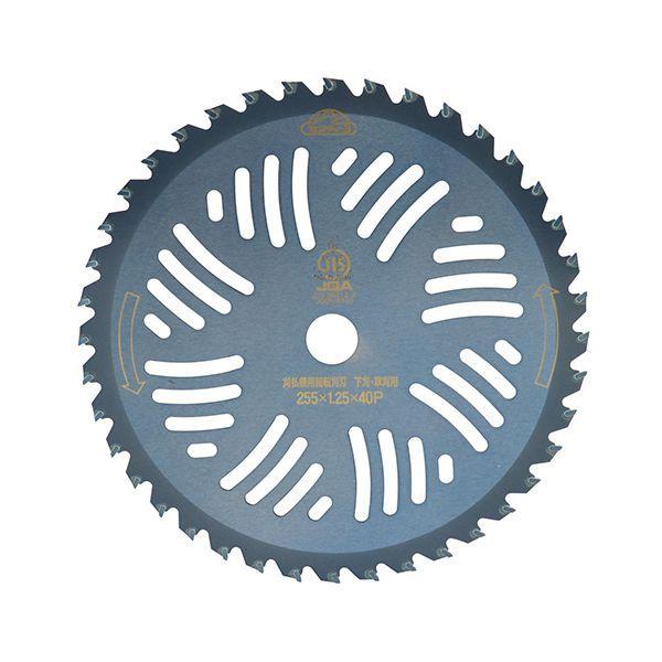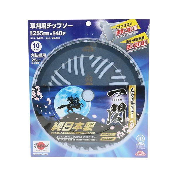 【商品説明】純日本製、藤原産業×津村鋼業共同企画チップソーです。【用途】刈払機用チップソー。【機能・特長】研磨やロウ付け作業等全て日本で製造・加工を行ったチップソーになります。4面研磨+最高級チップ搭載で抜群の切味と耐久性を実現しました。【材質】台金材質:SK-85。【仕様】●外径:255mm。●刃数:40P。●刃厚:2.0mm。●穴径:25.4mm。●25cc以上刈払機推奨。●JIS規格適合商品。【注意事項】刈払機の安全カバーを適切に装着し、防災メガネ、ヘルメット、手袋、長袖、長ズボン、長靴を必ず着用して下さい。この刈刃は刈払機専用ですのでそれ以外の使用は絶対にしないで下さい。作業用途に合ったチップソーを選定して下さい。特に雑草用のチップソーで灌木等の雑木は絶対に切断しないで下さい。チップソーにヒビ割れが無いか目立ては出来ているかよく確認して下さい。チップソーの締付けネジは確実に締付けて下さい。刈払機を試運転し、ガタツキ、ブレなどがないかを点検し、安全を確認して下さい。横振れ、外周振れの大きなチップソーは1刃当たりの切断負荷のバランスがくずれ振動発生の原因となりますので刈払機メーカー指定外の大きな外径のチップソーと同じく絶対に使用しないで下さい。作業をする時は、周囲に人がいないことを確認して少なくとも周囲15メートル以内には人を近づけないようにして行ってください。石、缶、ビン、電線等の硬質異物にチップソーが当たらないように、作業はそれら硬質異物を避けるように充分注意して行って下さい。チップソー回転数はチップソーがもし硬質異物に当たった時の衝撃による破損を少しでも少なくするために毎分6000回転以下で使用して下さい。高速回転は危険です。安全のため激しい衝撃を加えない様に作業を行って下さい。作業中にチップソーの異常な振動又は衝撃を感じたら直ちに刈払機のエンジンを停止してチップソーのヒビ割れ等の確認をして下さい。チップソーの異常を発見したら、そのチップソーは絶対に継続使用しないで下さい。作業終了時にはエンジンを停めチップソーを刈払機から取り外してチップソーにヒビ割れ、変形、摩耗等の異常が無いか点検確認して下さい。もしヒビ割れ、変形等の異常の場合は絶対に再使用せずに破棄して下さい。摩耗の場合は清掃の上で適切な目立てをして下さい。次回使用のために防錆油等で防錆処理の後に幼児の手の届かない安全な場所に保管してください。