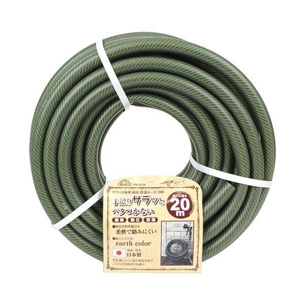 【商品説明】お庭の景観を損なわない、おしゃれカラーです。【用途】水まき・掃除・洗車など多用途対応の散水ホース。【機能・特長】べたつきにくい特殊加工で、サラッと快適に作業できます。安心・安全の日本製です。光を透しにくく藻の発生を防ぎ、ホースの詰りを解消します。耐圧糸入りなのでストップ付ノズルにも装着・使用可能です。季節を問わず柔軟性に富み、耐候性・耐久性に優れた耐圧散水ホースです。【材質】PVC。ポリエステル糸。【仕様】●色:オリーブ。●ホース内径:15mm。●ホース外径:20mm。●ホース長さ:20m。