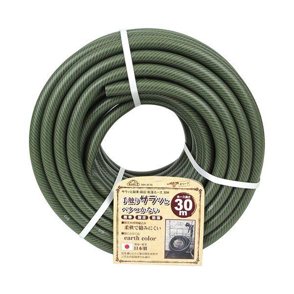 【商品説明】お庭の景観を損なわない、おしゃれカラーです。【用途】水まき・掃除・洗車など多用途対応の散水ホース。【機能・特長】べたつきにくい特殊加工で、サラッと快適に作業できます。安心・安全の日本製です。光を透しにくく藻の発生を防ぎ、ホースの詰りを解消します。耐圧糸入りなのでストップ付ノズルにも装着・使用可能です。季節を問わず柔軟性に富み、耐候性・耐久性に優れた耐圧散水ホースです。【材質】PVC。ポリエステル糸。【仕様】●色:オリーブ。●ホース内径:15mm。●ホース外径:20mm。●ホース長さ:30m。