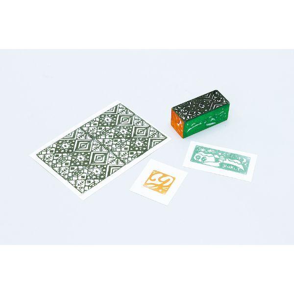 【商品説明】●30mm角×70mmの大きなサイズのけしゴム印が新登場!彫刻刀で簡単に彫れる消しゴムの印材!印面が大きく6面全て彫ることができる!●彫刻刀で簡単に彫れる消しゴムの印材。持ち手部分の造形も簡単。●高蝋石中と同じ30mm角の高さ70mmという人気サイズなので印面が大きい!6面全て彫ることができます!●名前や連続模様や自分のマークづくりなどができ、またそれぞれの版を組み合わせることもできます。※カッターナイフで彫り、細かい部分や仕上げは印かん刀で行えます。●商品サイズ(単位mm):けしゴム印:30×30×70mm、印かん刀●セット内容:けしゴム印(30×30×70mm)×1、印かん刀(全長:130mm、刃部:幅1.5×長20mm)×1●重量(g):140g●材質:けしゴム印:PVCゴム●包装形態:無
