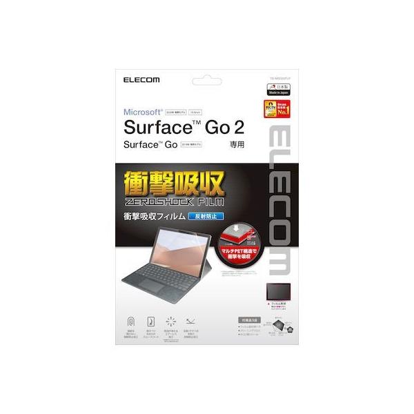 エレコムメーカーお問い合わせ:0120-898-794【商品説明】●マルチペット構造が衝撃を吸収し液晶画面を保護するSurface Go 2、Surface Go用衝撃吸収フィルムです。●時間の経過とともに気泡が目立たなくなる特殊吸着層を採用したエアレスタイプです。●小さな気泡ができたときには、指などで押し出すことで気泡を抜くことができます。●指紋汚れを付きにくくする指紋防止コーティングを施しています。●光の映り込みを抑え、見やすい画面を実現する反射防止タイプです。●摩擦を軽減した表面仕上げで、スベスベした快適な操作を実現します。●ガラスに100cmの高さから150gの鉄球を落とす実験で、従来品では画面が破損したのに対し、本製品は画面を守る結果となりました。※当社試験結果より●※当社によるガラスへの硬球落下試験結果(実力値)より。実力値であり保証値ではありません。●貼り付け面にシリコン皮膜をコーティングし、接着剤や両面テープを使わずに貼り付け可能な自己吸着タイプです。貼りやすく、貼り直しも可能です。●端末の形状に合わせたサイズにカット済みなので、パッケージから取り出してすぐに使用可能です。●フィルムがキレイに貼れる、専用ヘラと、クリーニングクロス、ホコリ取りシールが付属しています。
