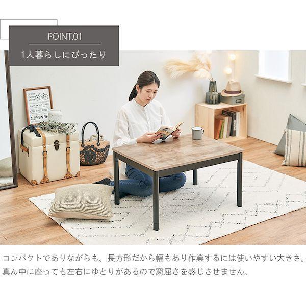 【商品説明】●古木調の天板にスマートな脚。お部屋をアンティークナチュラルなテイストに。●商品サイズ(外寸)(約)幅75×奥行60×高さ37/42cm●内寸及び補足説明:●組立式●収納ボックス付●5cm継脚付●成分材質:天板:プリント化粧繊維板、脚部:ラバーウッド、塗装:ウレタン樹脂塗装、 ヒーター:MS-303H 300W石英管ヒーター(中間スイッチ)